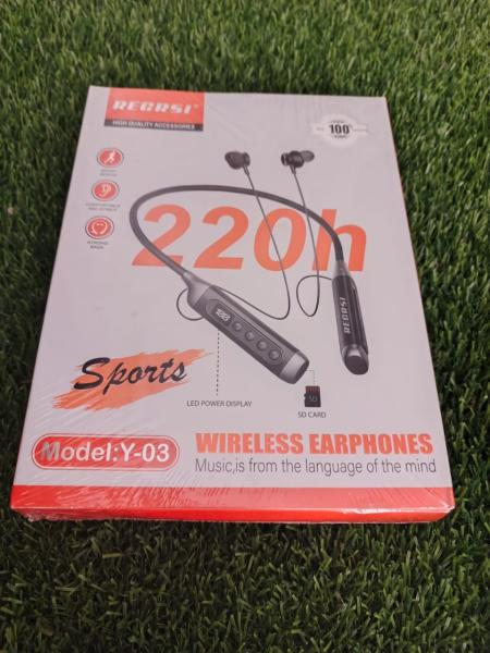 Enjoy non-stop music and calls with the Regrsi Y-03 Wireless Earphones. ✅ Up to 220 hours standby time ✅ Comfortable & stable sports design ✅ Built-in LED power display ✅ SD card support for music on the go ✅ Strong bass & high-quality sound