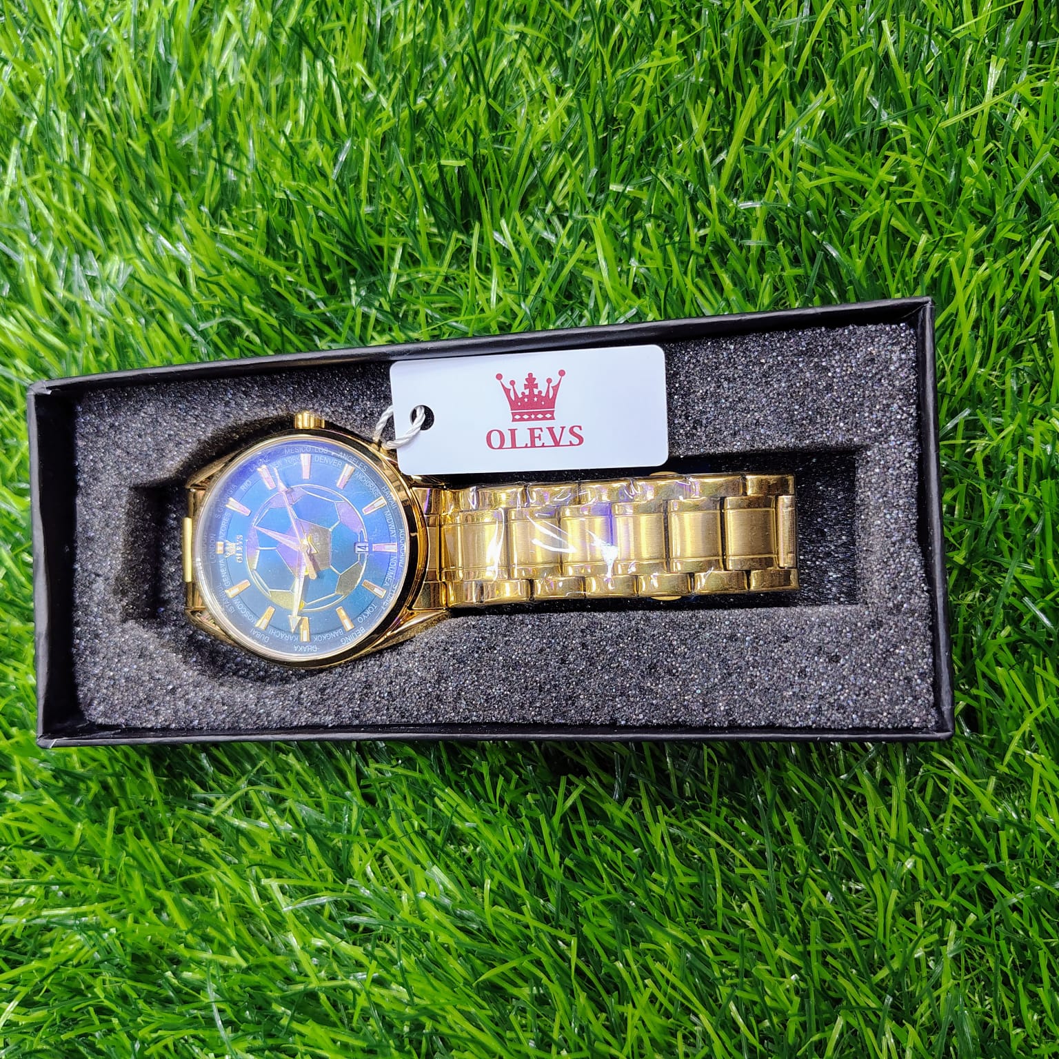 OLEVS 9949 Football Dial Men Business Sport Quartz WatchBrand Name: OLEVSModel Number: 9949Case Thickness: 9mmBand Width: 20mmBand Material Type: Stainless SteelCase Shape: RoundDial Window Material Type: HardlexBoxes & Cases Material: PaperDial Diameter: 39mmFeature: Luminous, Complete Calendar, Water ResistantWater Resistance Depth: 3BarClasp Type: Push Button Hidden ClaspBand Length: 20cmCase Material: Stainless SteelMovement: QuartzStyle: LuxuryOrigin: Mainland China